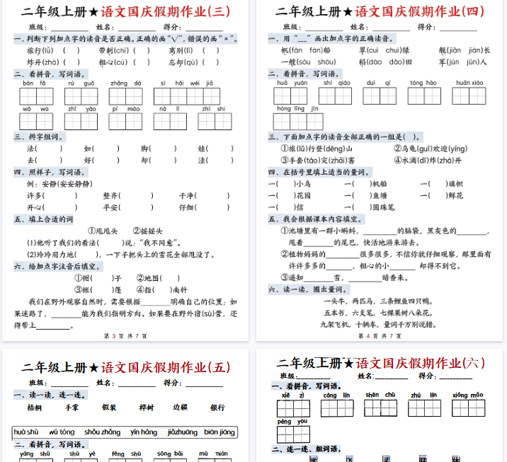 | 【8页完整版】二(上)语文国庆假期作业(一) | |