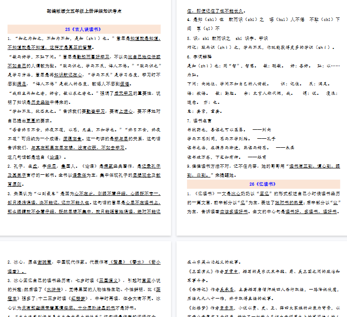 | 【9页完整版】五(上)语文:第8单元自编知识点(可一键下载打印) | |