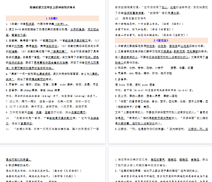 | 独家整理:五(上)语文第一单元自编知识点精编(10页完整高清版) | |