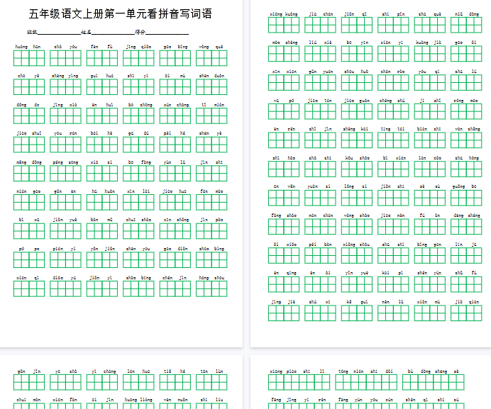 | 【立即点击→一键极速下载】五年级上册第一单元拼音写词语完整版,打印即练! | |