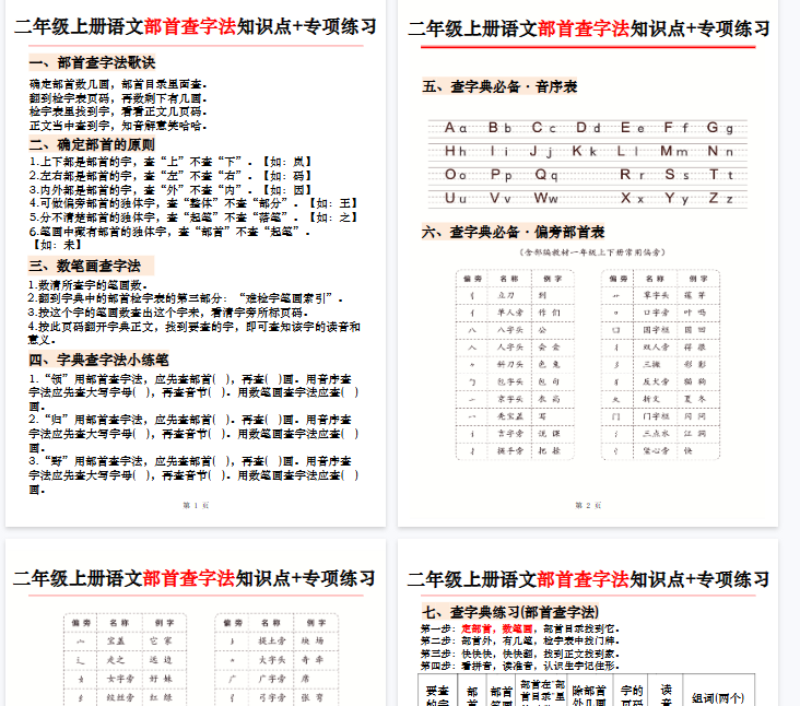| 【高清6页整理】二年级(上)语文《部首查字法》知识点+专项练习 | |