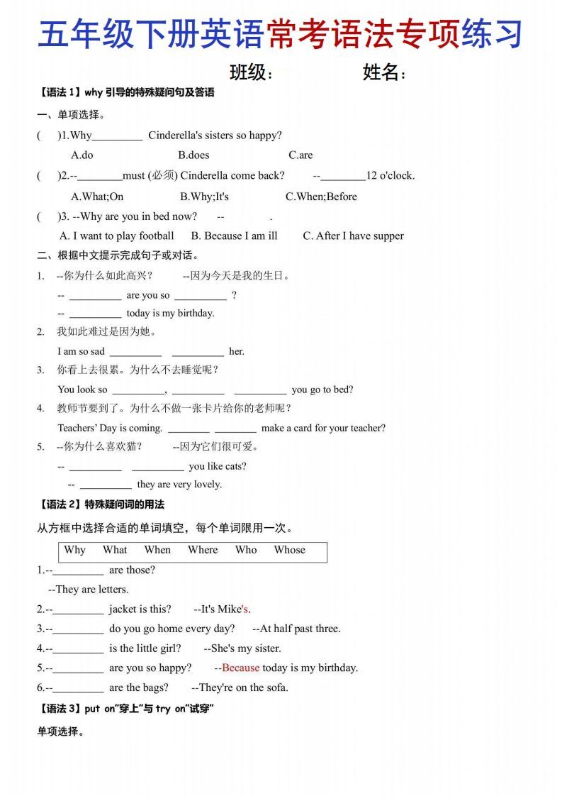一键快速下载,五下英语译林版语法专项精练(附答案解析) | |