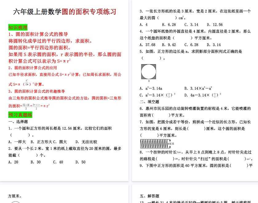 🔹5类重点专项突破(分数除法、圆、百分数等)