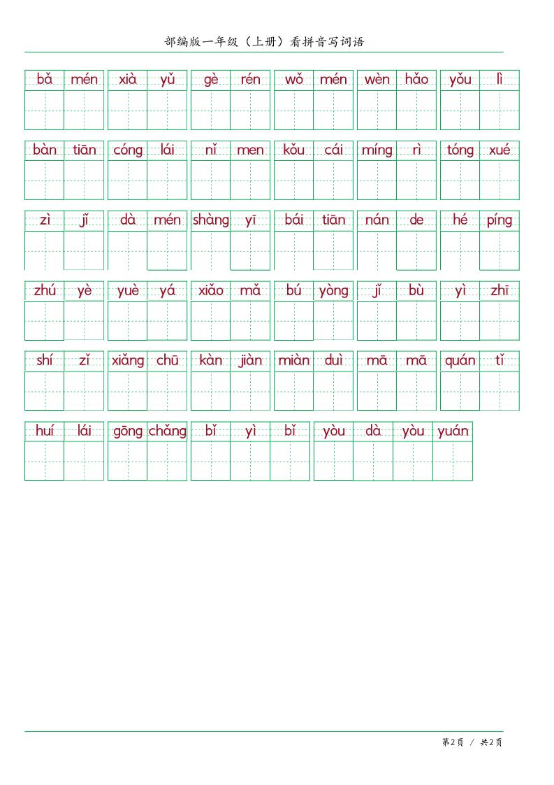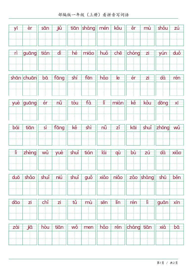 一年级语文看拼音写词语专项训练(全册)|高清可打印PDF版 | |