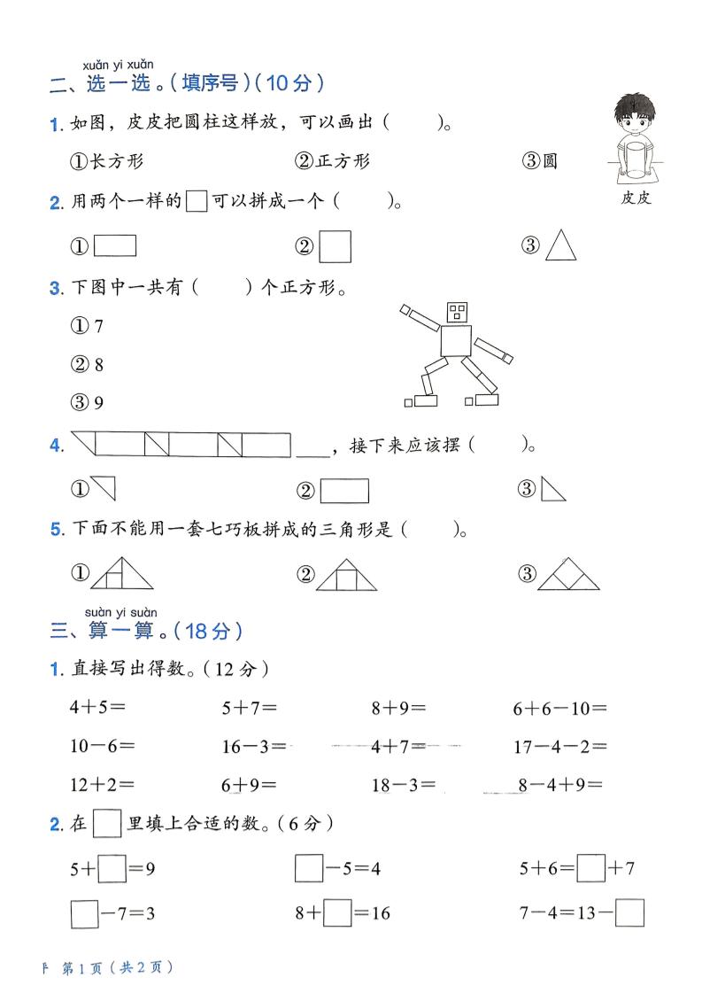 小学一年级数学上册各单元质量测评卷(人教版)|含答案|高清可打印 | |
