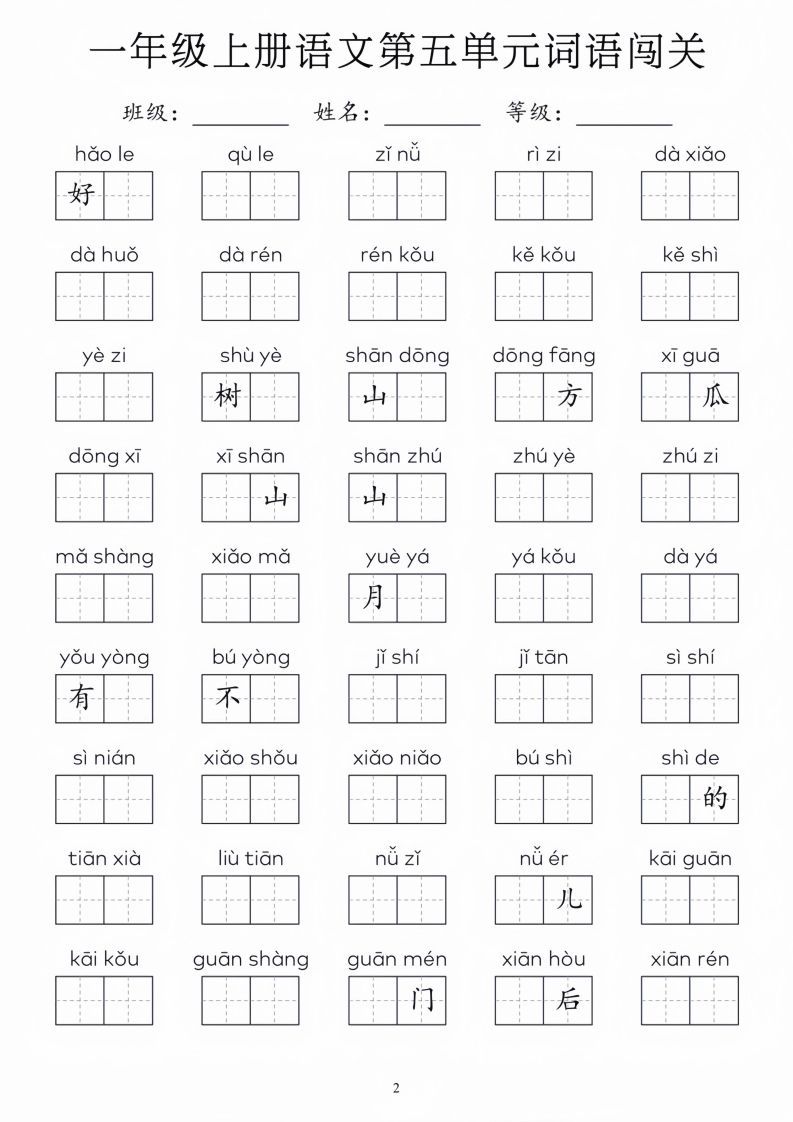 🚀【今日限时免费领取】点击“快速下载”,立即获取《一年级上册语文1-8单元词语闯关_01》打印版!让孩子赢在词语积累第一步! |