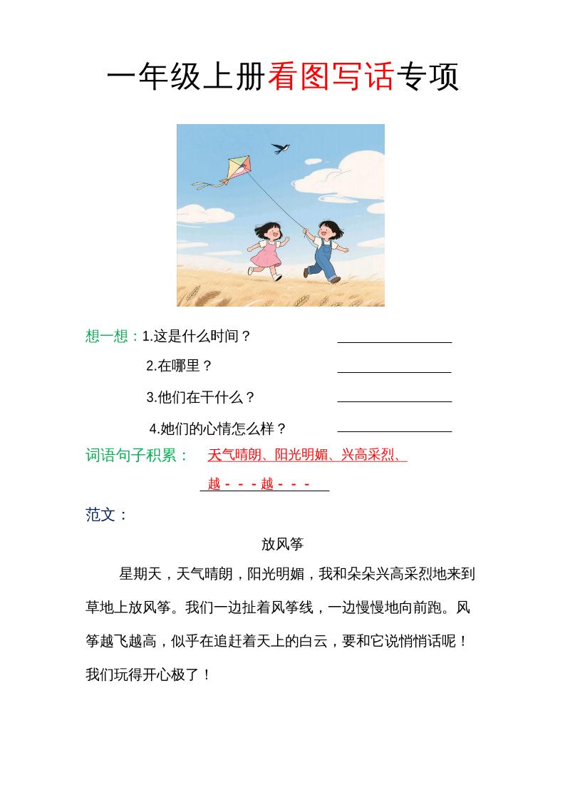 一年级上册语文看图写话专项(范文)+图解技巧 +高清可打印 | |