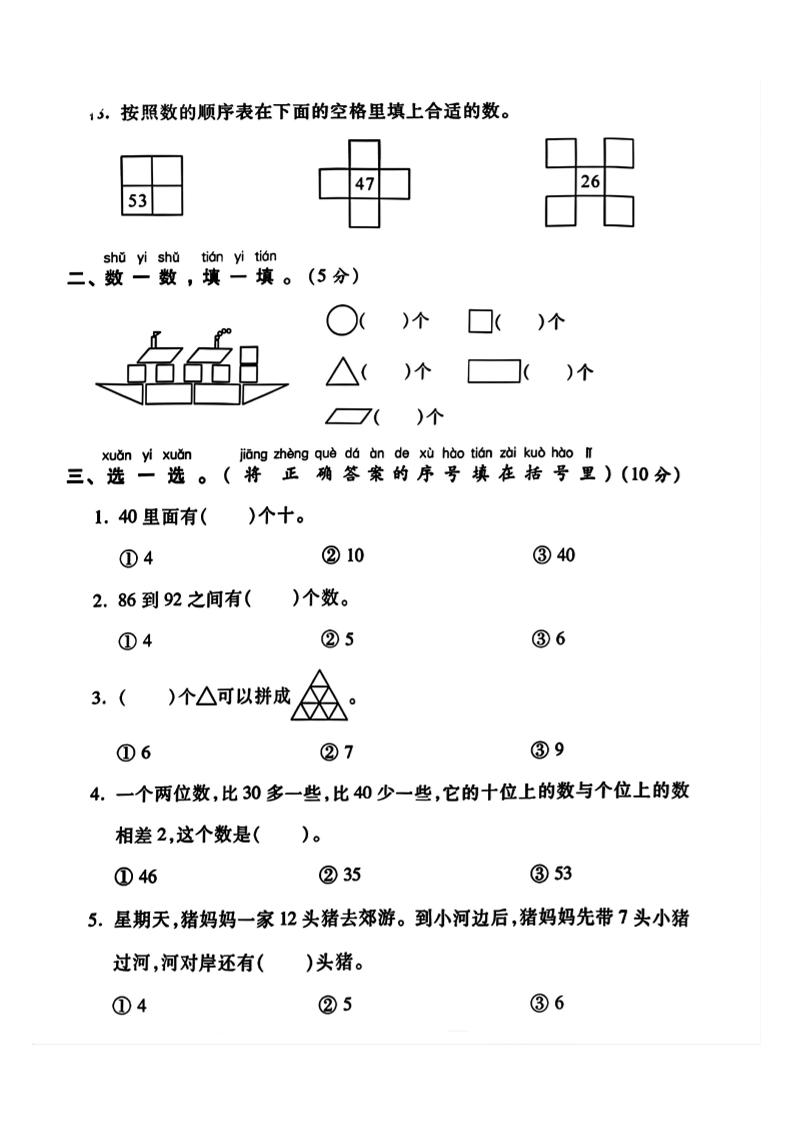 一年级下册数学期中测试卷2|高清可打印|同步课堂巩固 | |
