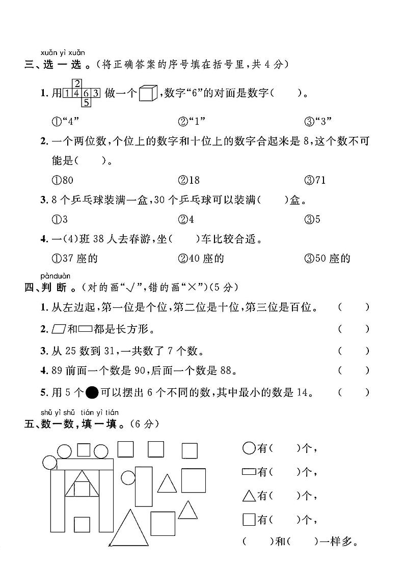 一年级下册数学期中综合达标测试卷二(全国通用版) | |