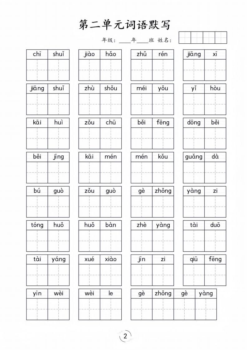 资源亮点 | ✅ 1-8单元全册整理,覆盖全部生字词注音与书写! ✅ 高清原图一键保存,清晰不模糊,支持直接打印! ✅ 同步部编版教材,匹配课堂进度,家长辅导神器! ✅ 拼音+词语+田字格规范书写,精准练字一步到位! |