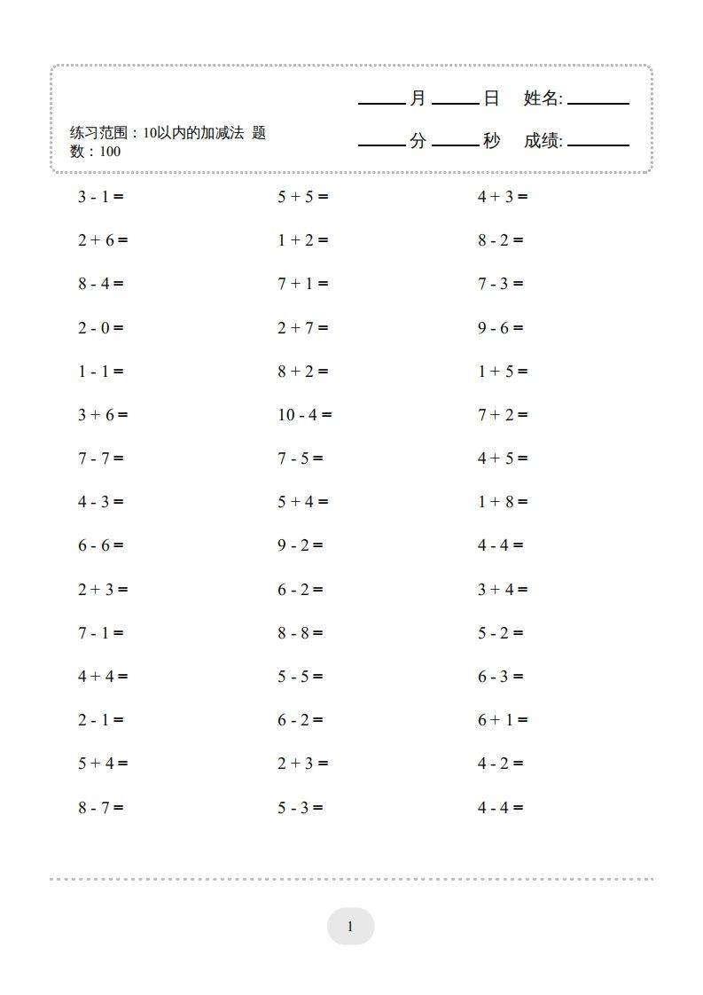 ⏩ 一键快速保存!一年级数学上册10以内加减法2000题(人教版)PDF printable版💯 每日一练,秒变计算小天才!高清无水印,速存速练,错过等一年! | |