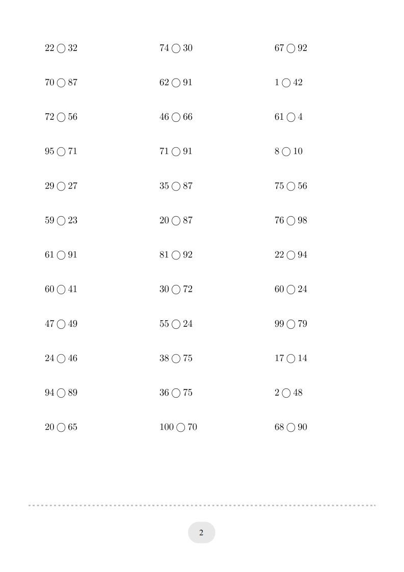 一键快速下载,一年级数学下册1000题人教版:100以内数比大小专项强化训练(高清可打印) | |