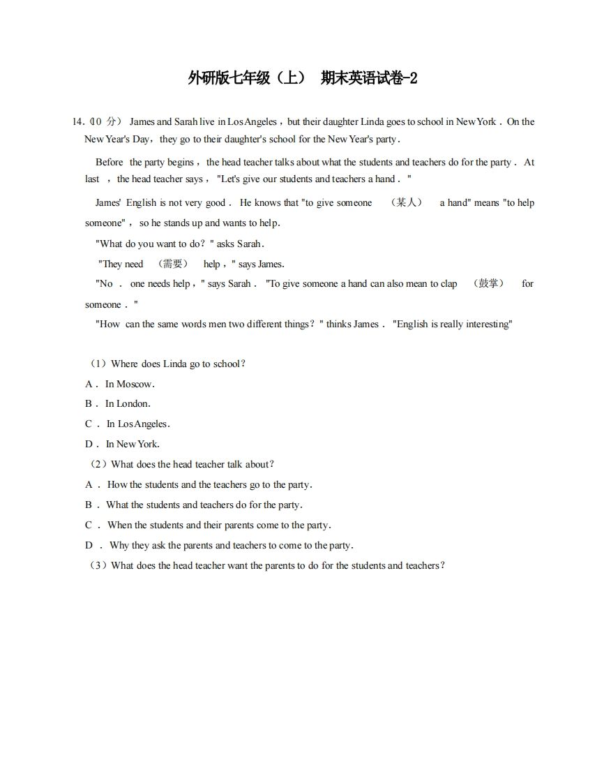 七年级(上)英语期末试卷5-2卷(外研版)|高清原版+答案解析|快速下载一键保存 | |