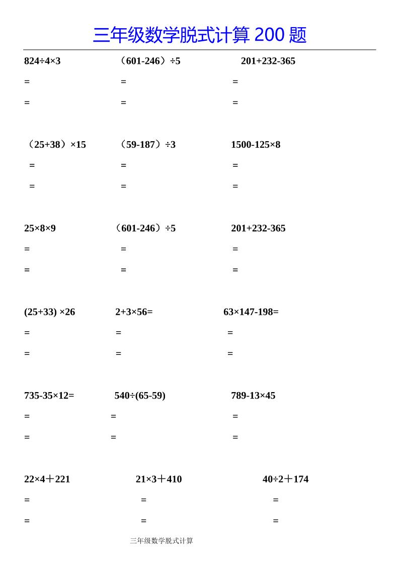 三下数学【脱式计算200题】(附答案详解)— 小学核心计算训练神器 | |