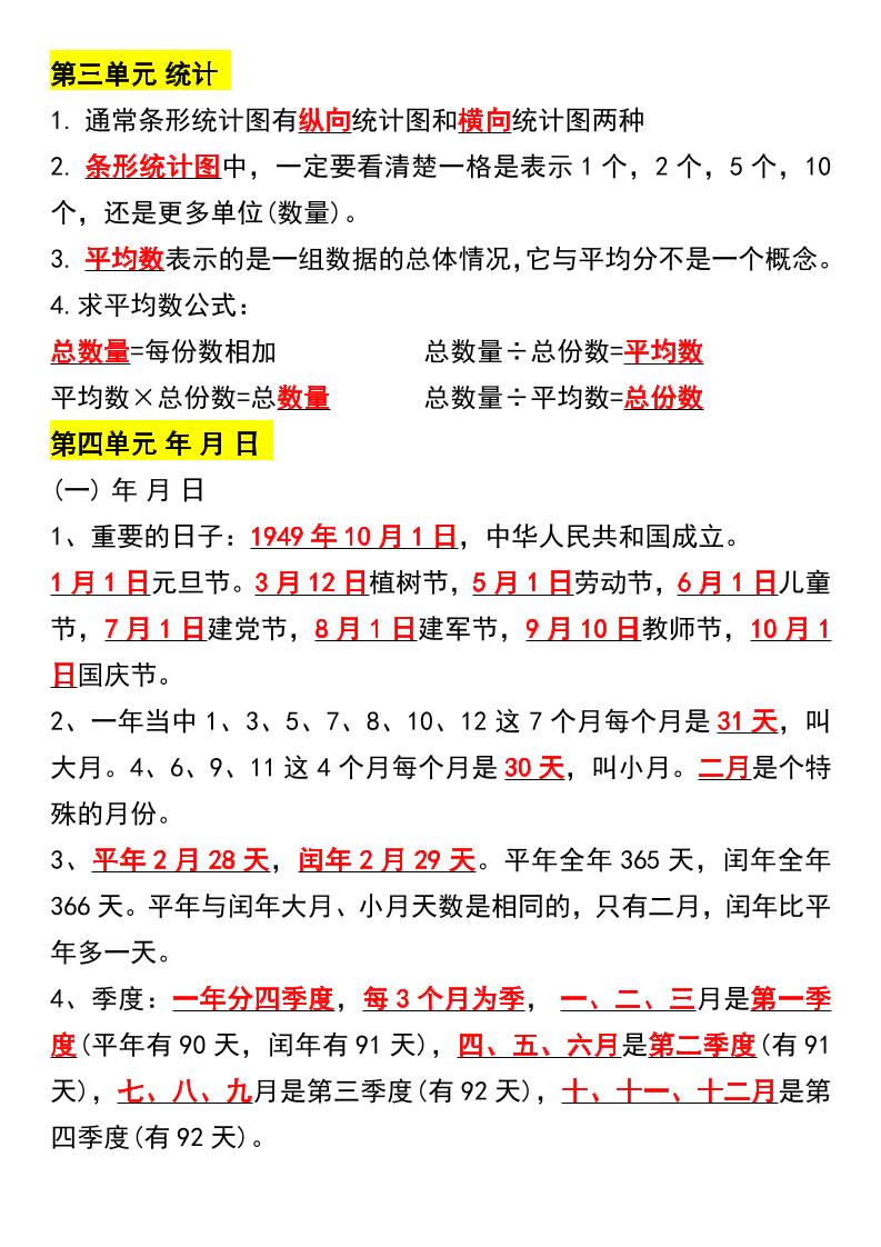 三下数学期末必背1-8单元重点归纳(人教版) | |