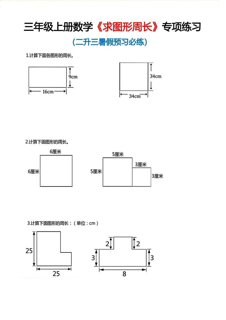 ✨ 一键快速下载,三年级上册数学《求图形周长》专项练习空白版!高清无水印打印版,边学边练,秒提计算准确率!家长老师速存,孩子轻松掌握周长公式,限时抢藏,先到先得! | |
