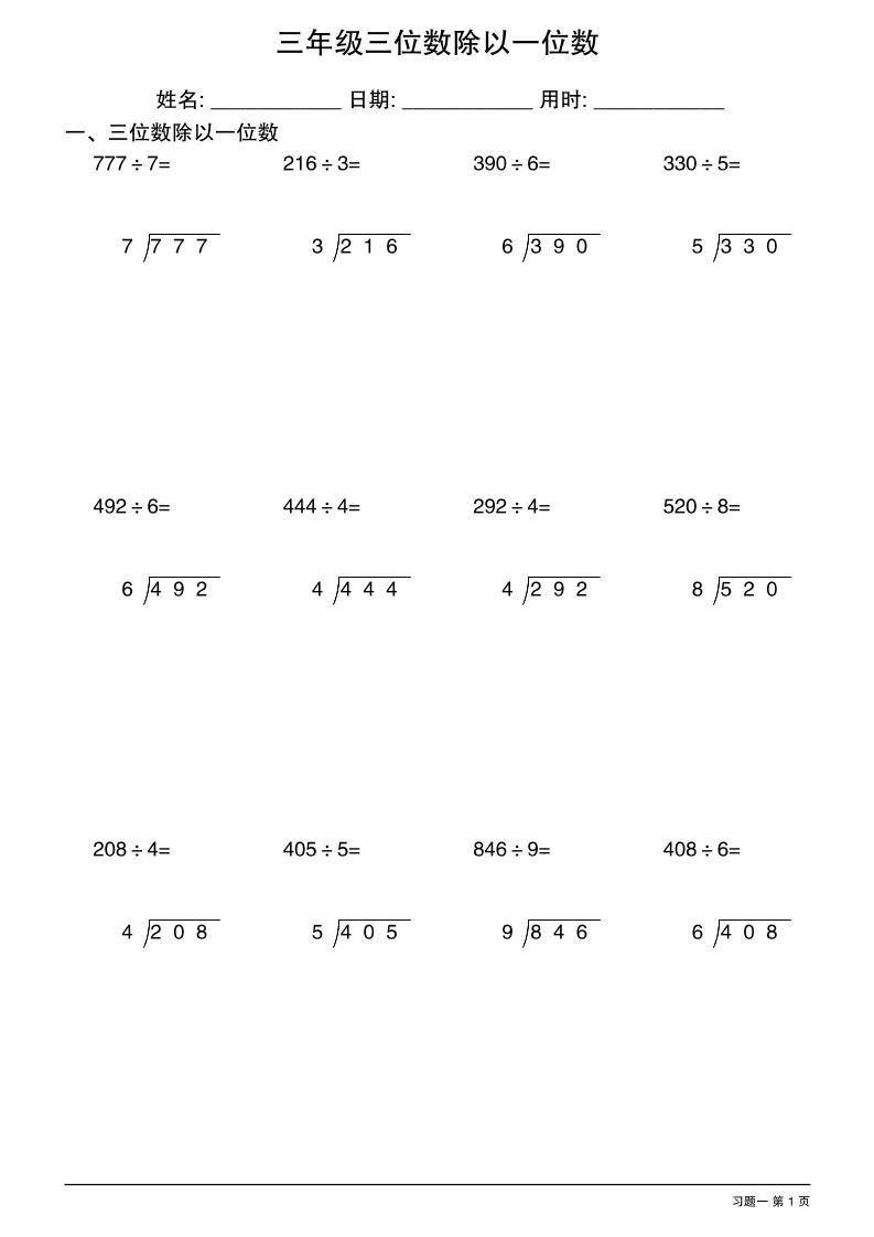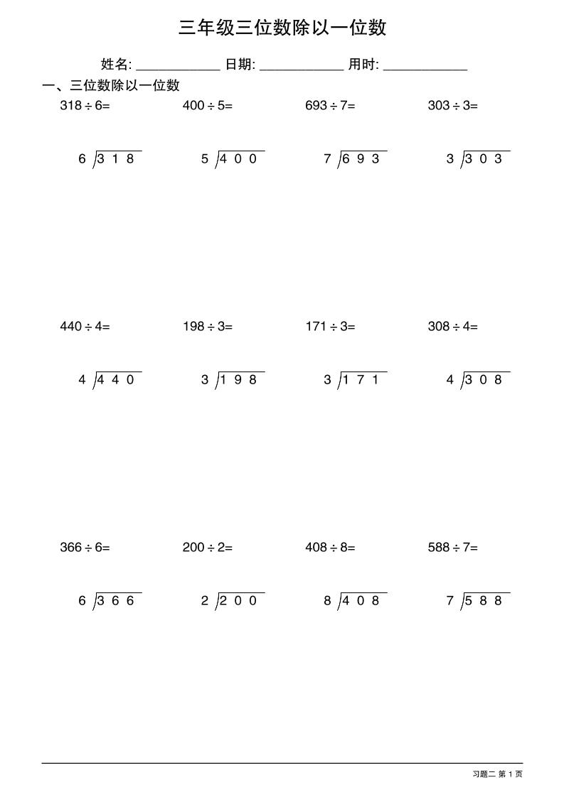 ✅ 一键快速下载,三年级下数学三位数除以一位数竖式练习100道!🔥 手写版高清PDF可打印,免费速存!每日一练,秒破除法计算难关,家长老师都在用的提分神器,立即保存不等待! | |
