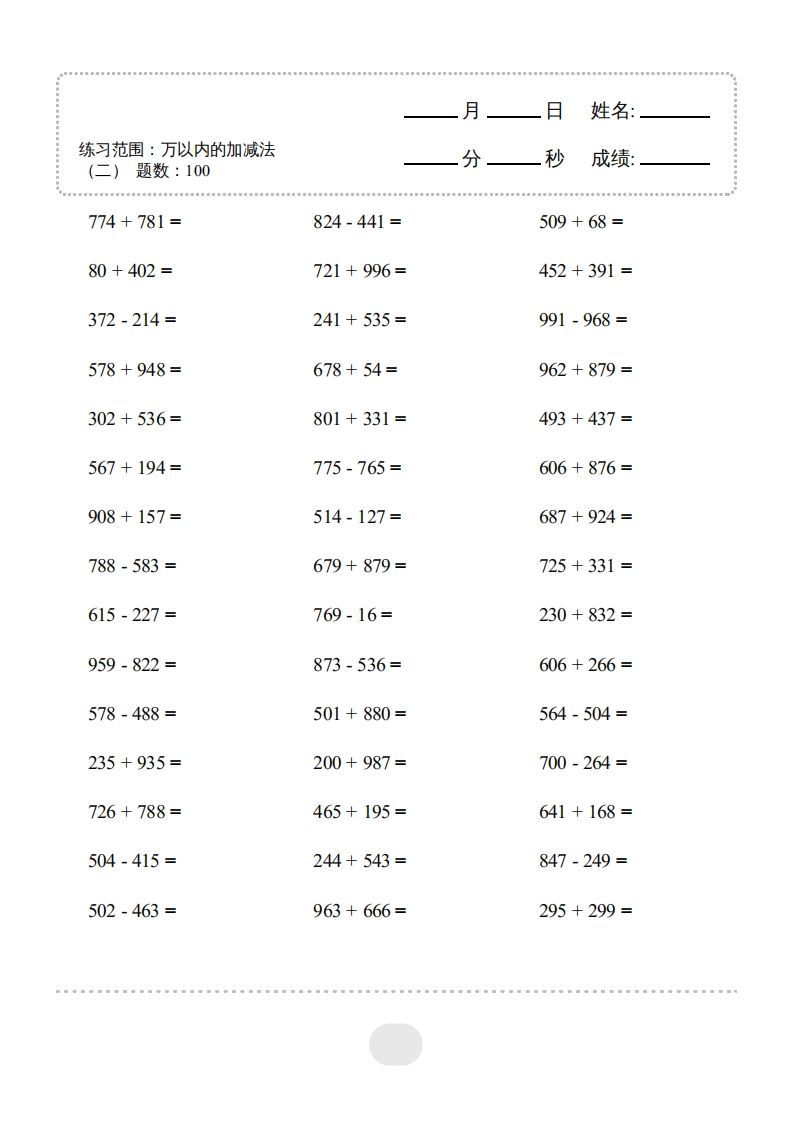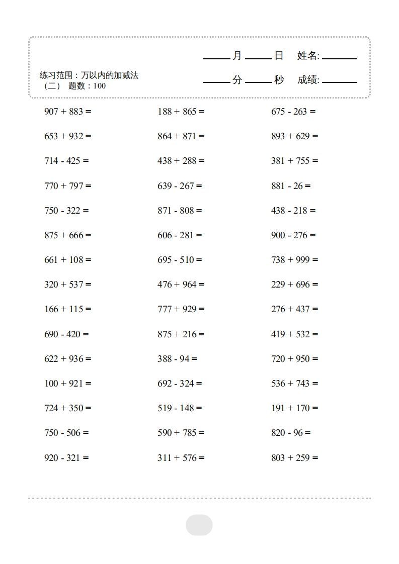 🔥一键快速下载,三年级数学上册口算题(万以内加减法(二))连打2000题(人教版)!海题速存,秒算提升!每天练100题,20天算术小天才养成计划,立即保存刷题神器! | |