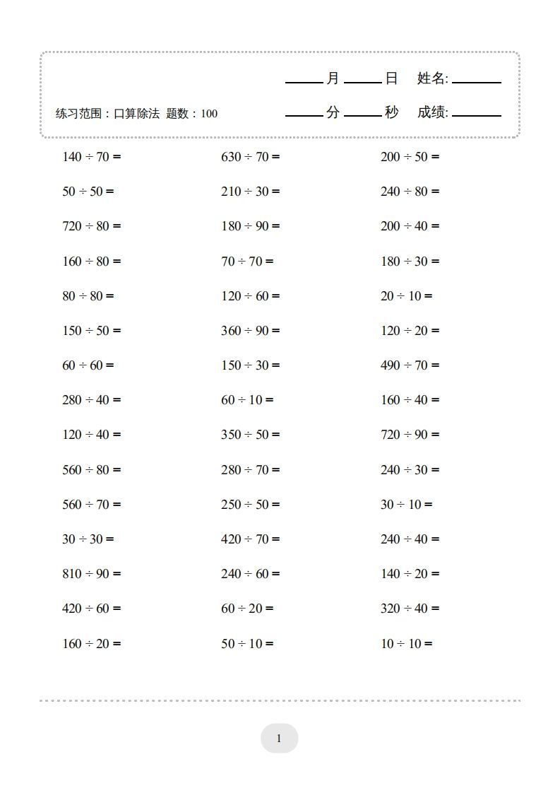 🧮 一键快速保存!四年级数学上册口算题(口算除法)2000题高清版📥 每日一练,秒算提升,小学强基必备神器,免费极速下载,拿走就用! | |