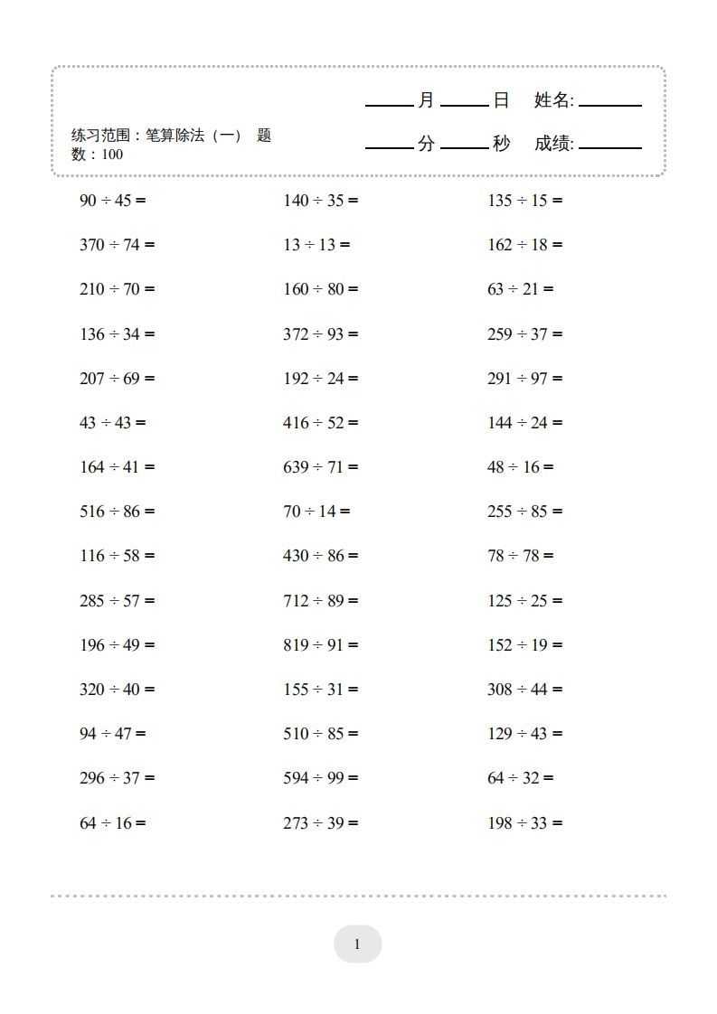 🔥一键极速下载,四年级数学上册口算题(笔算除法(一))2000题全解析!高清打印版+答案详解,小学生每日一练提分神器,限时免费领取,先到先得,手慢无! | |