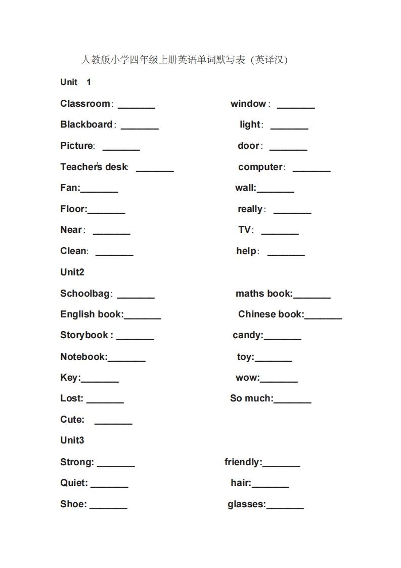 ✨一键快速保存+下载,四年级英语上册单词表英译汉(人教PEP)高清版!精准对应课本单元,生词释义秒懂,扫码即存即学,爸妈辅导无忧,孩子背单词更高效!错过再无! | |