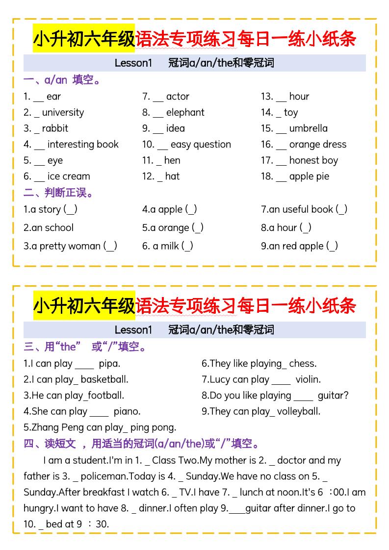 🚀限时免费领取!小升初语法每日一练小纸条 → 点击一键下载,立即保存学习! ⚡别让语法拖后腿! |