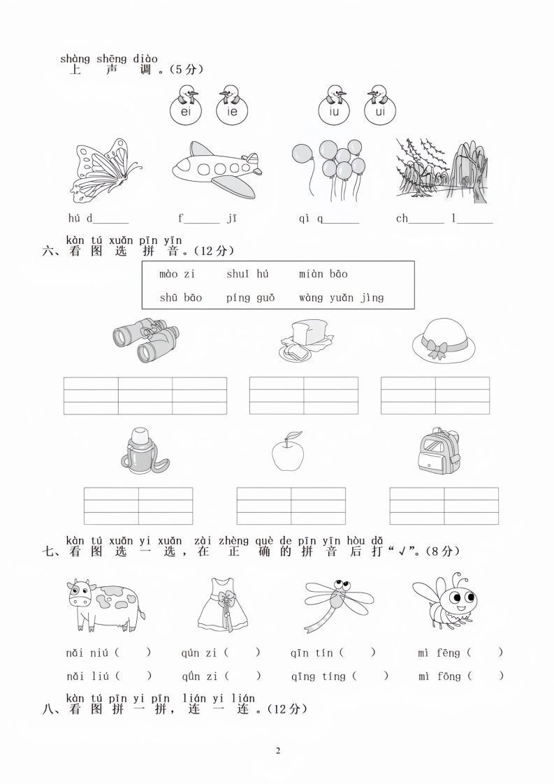 内容结构 | 📘 听力理解:图片连线+指令应答 📘 拼音拼写:声母韵母+拼读组词 📘 识字填空:高频汉字+语境运用 📘 看图说话:情节描述+句子扩展 📘 阅读理解:短文+3道精练题 |