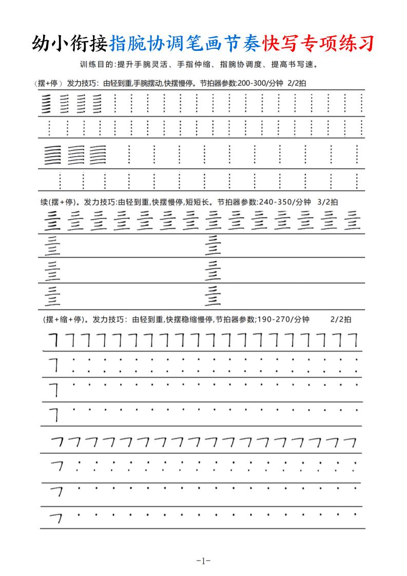 幼小衔接指腕协调笔画节奏快写专项练习(完整9页高清版) | |