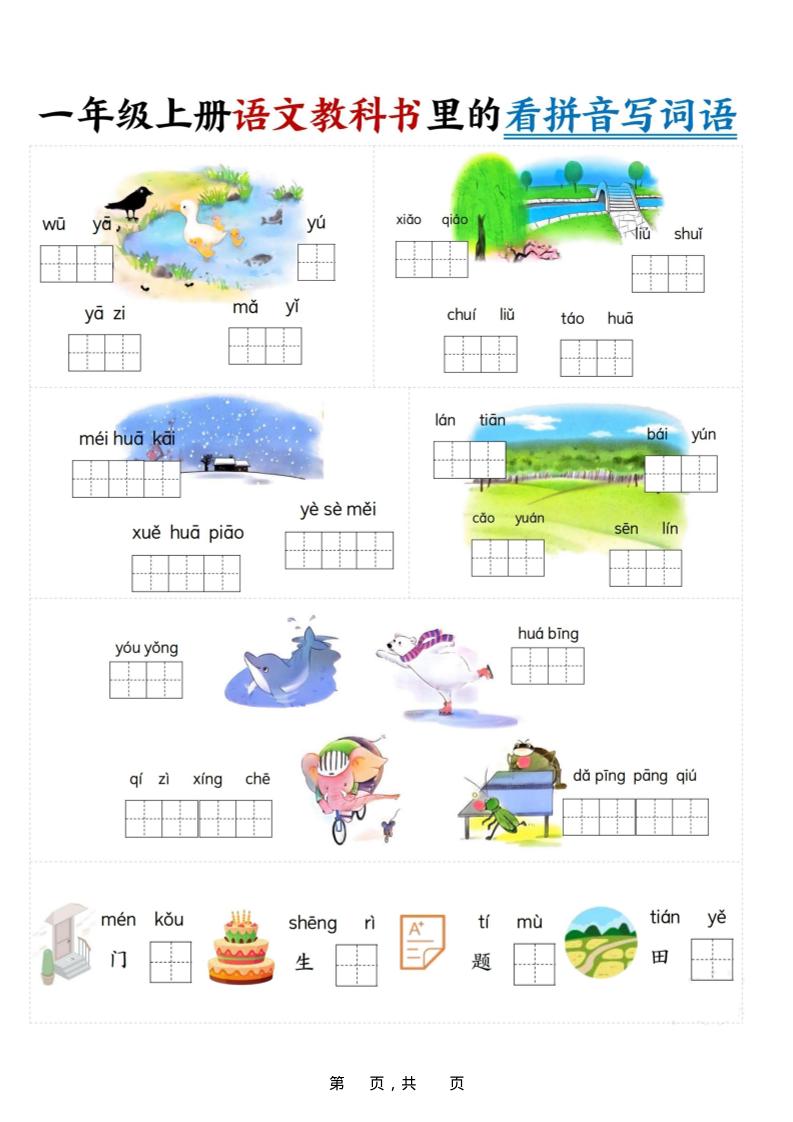 🚀【立即一键保存】新一上语文看拼音写词语16页|部编版|高清可打印|考试冲刺必备用!错过无补! |