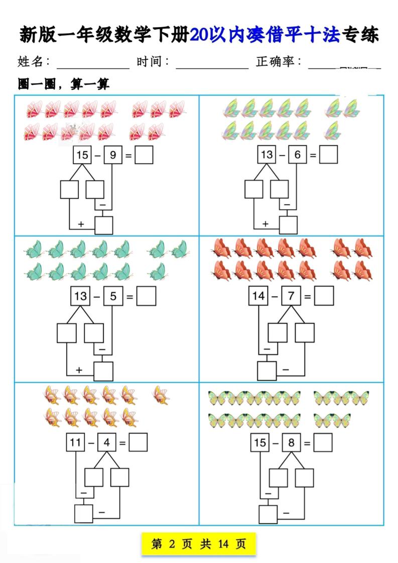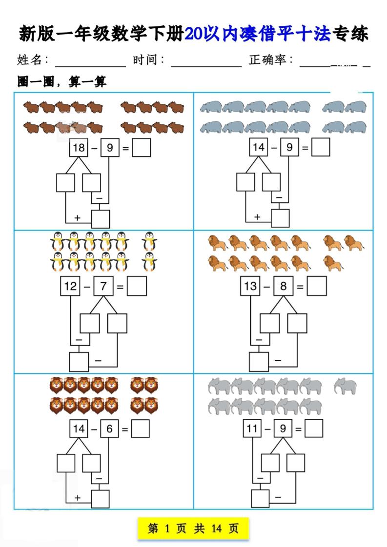 一键快速下载,新版一年级数学下册20以内凑十法与借十法专项练习题(14页完整版PDF) | |