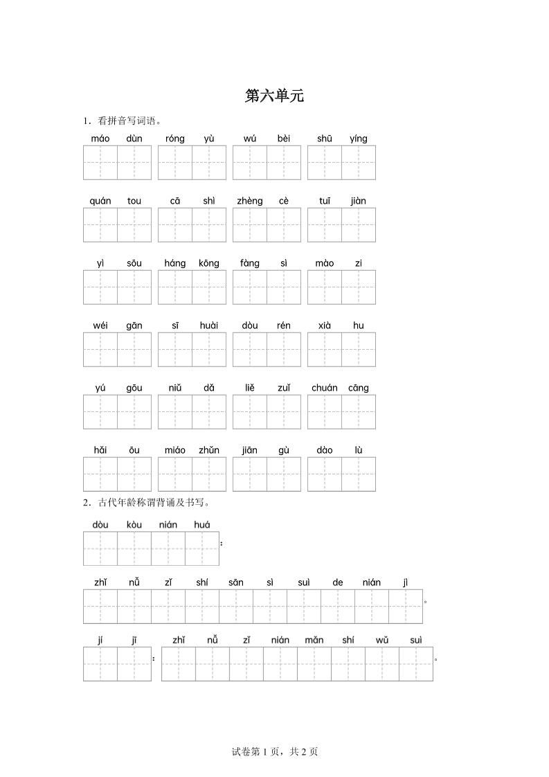 统编版语文五年级下册第六单元:课文生字复习 + 古代年龄称谓默写(完整版可一键下载打印) | |