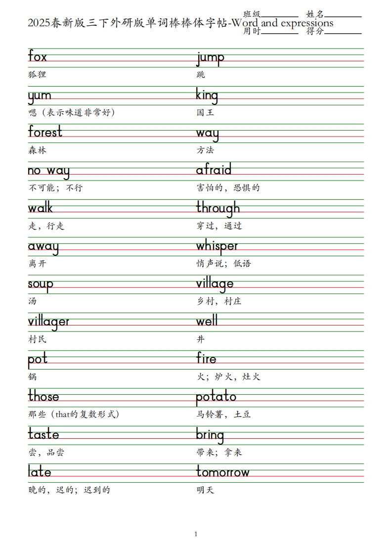 2025春新版三下外研版英语单词棒棒体字帖-Wordandexpressions |