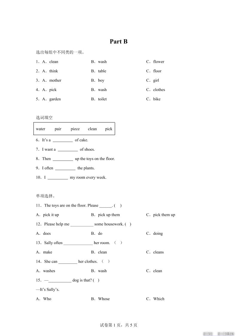 一键快速保存,全新闽教版英语六年级上册Unit5 PartB练习卷!高清可打印,同步课堂巩固神器,点击立即下载冲刺满分! | |