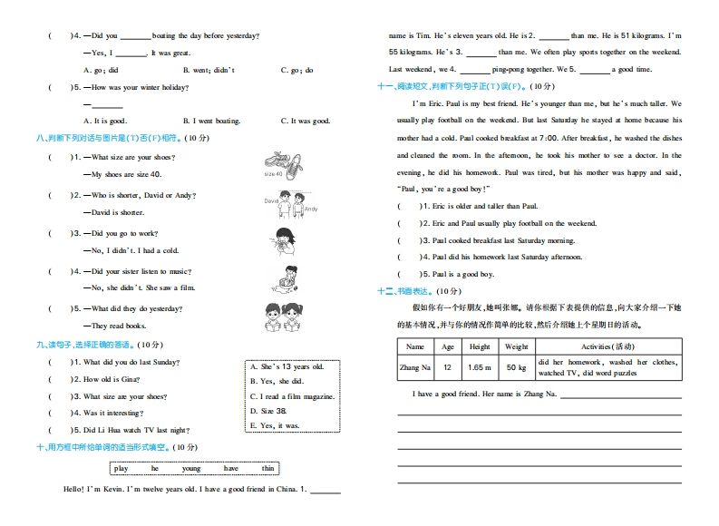 六下人教PEP英语期中试卷(含听力音频+参考答案) | |