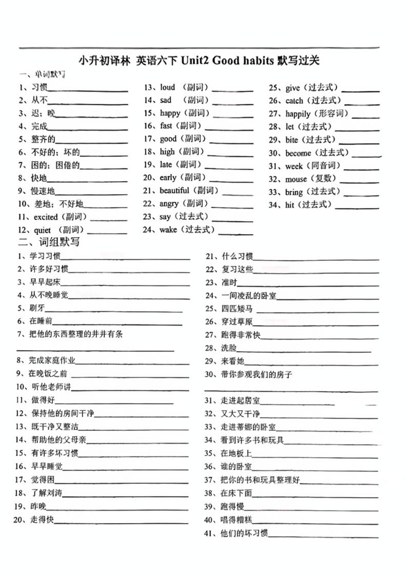 资源亮点 | ✅ 译林版六年级下册全6个单元默写清单 ✅ 含英译汉+汉译英双向默写模板 ✅ 标注重点词汇与语法结构,精准提分 ✅ 扫码一键保存,高清可打印PDF版 ✅ 小升初高频考点全覆盖,考场不丢分 |