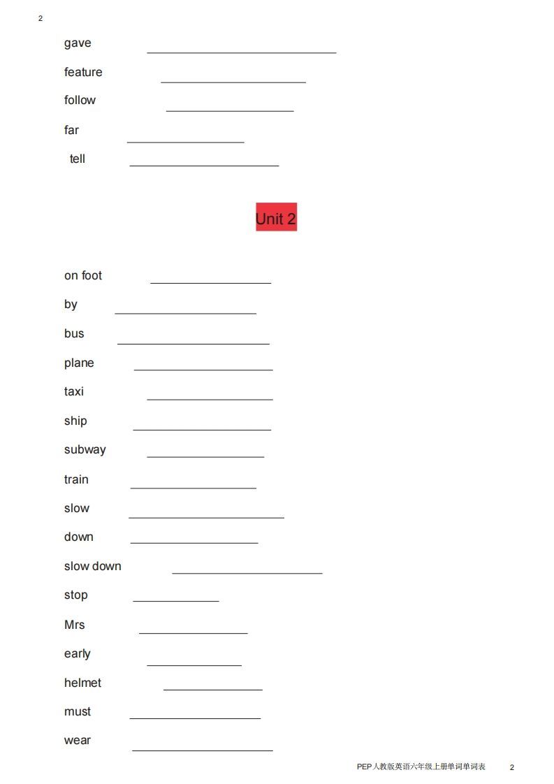 六年级英语上册单词表英译汉(人教版PEP)——同步教材,高频词汇全收录 | |
