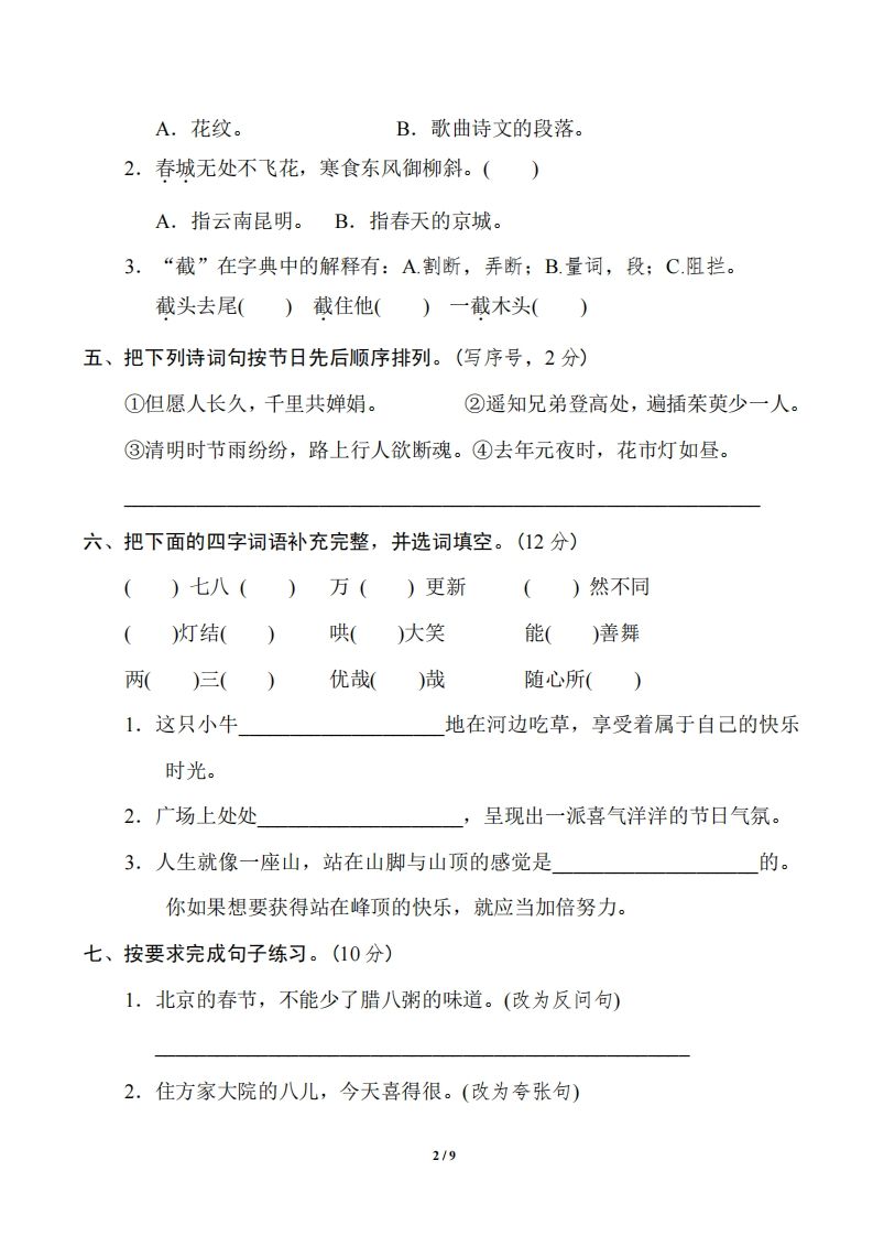 内容优势 | 涵盖课文《北京的春节》《腊八粥》《古诗三首》等重点 ✅ 基础字词、句子运用、课文理解、口语交际全覆盖 ✅ 按考试真题排版,贴近单元测试题型 ✅ 每日一练+单元检测双模式,适合课后巩固与阶段测评 |