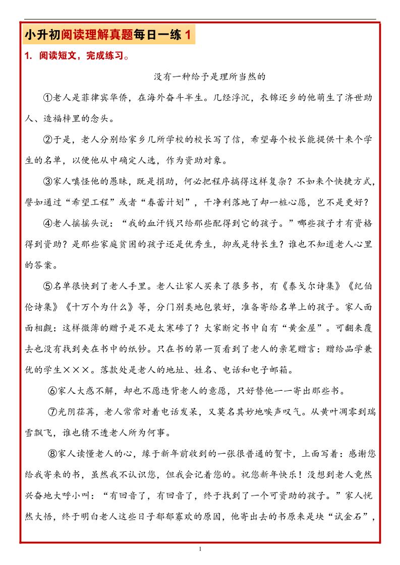 历年语文小升初阅读理解真题每日一练(精校完整版) | |