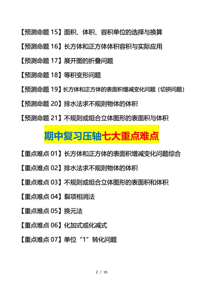 🔥五下数学期中复习终极压轴版(原卷版)北师大版16页!✅一键快速下载,抢先获取压轴冲刺密卷!高清无水印原卷打印,助你高效提分冲刺满分!错过再无,快快保存锁定高分! | |