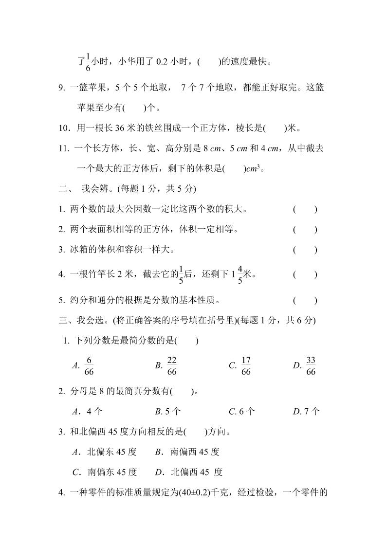 五下青岛六三制数学【名校期末卷.4】精准测评卷|直接打印即练|高清PDF一键保存 | |