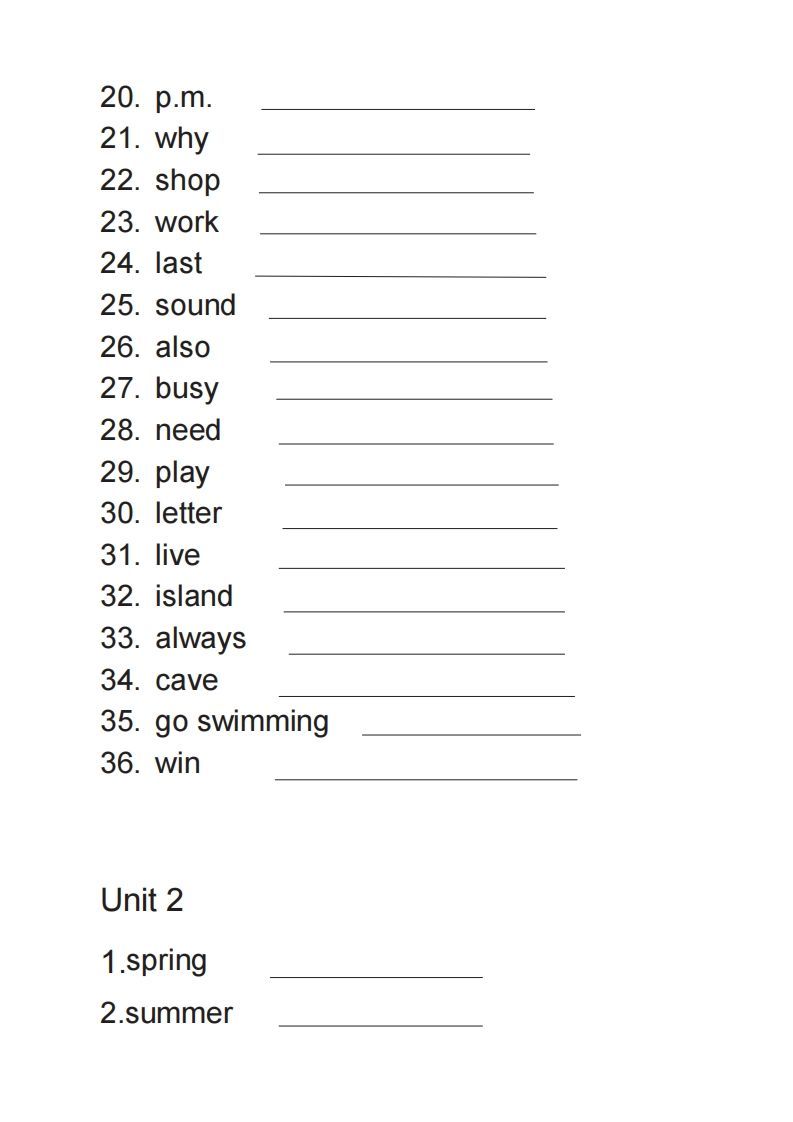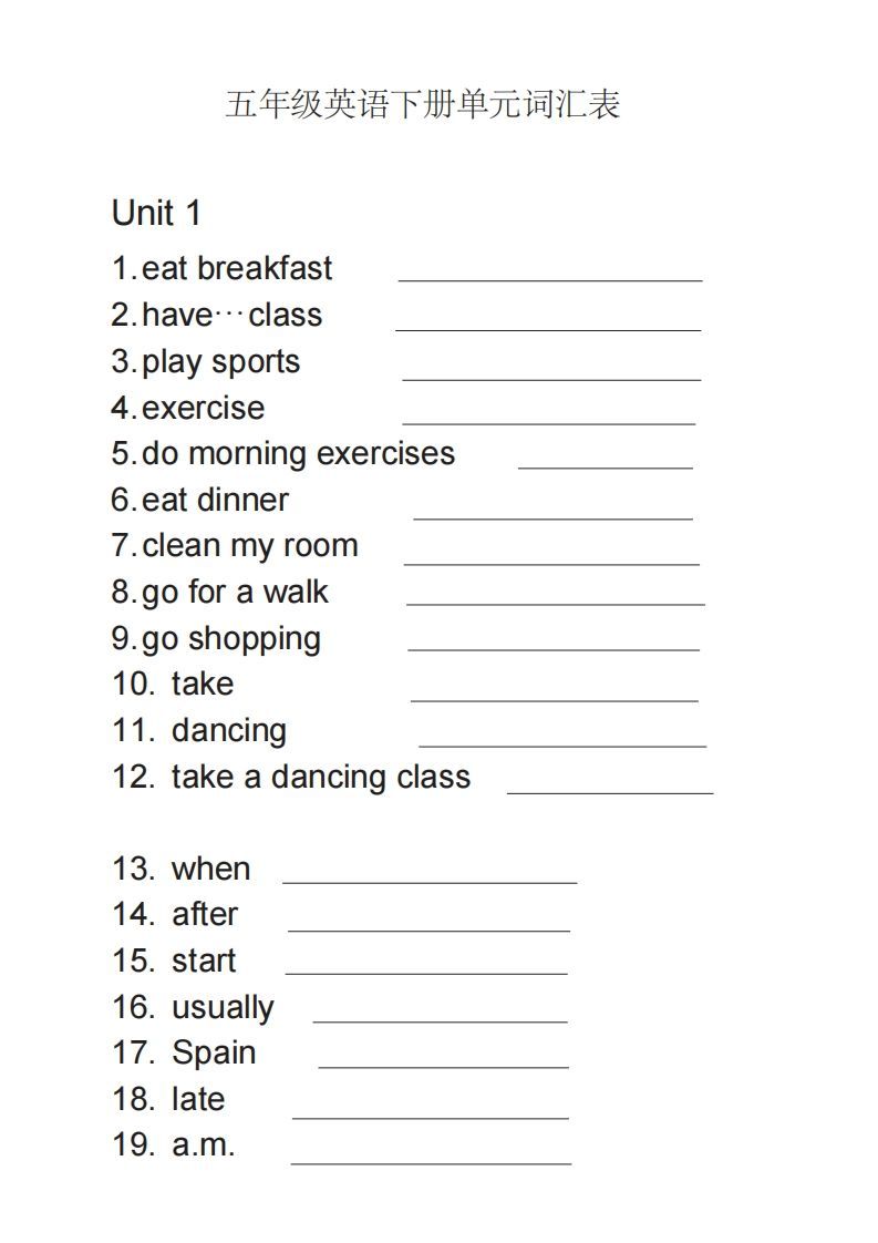 五年级英语下册单词表英译汉(人教PEP版)|配套音频|可打印PDF | |