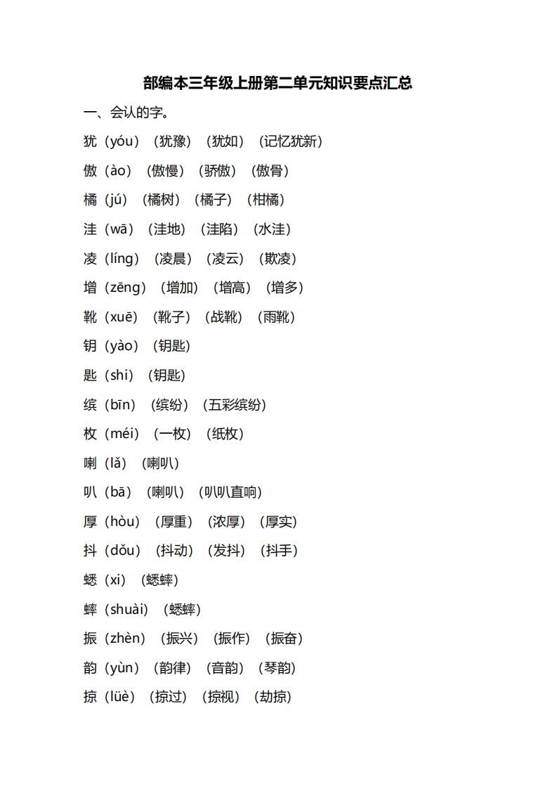 | 三年级语文上册第二单元知识要点归纳(部编版)|高清可打印版 | |