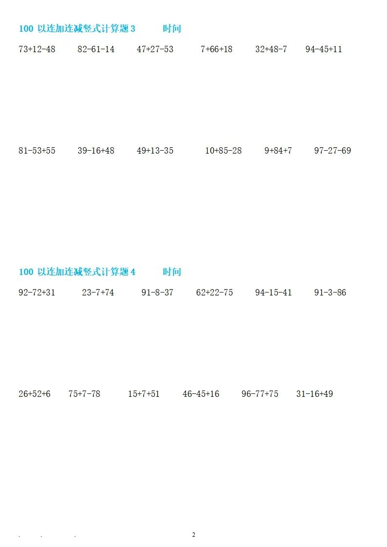 二上数学100以内连加连减竖式计算专项训练包 | 每日一练,稳抓计算高分 | |