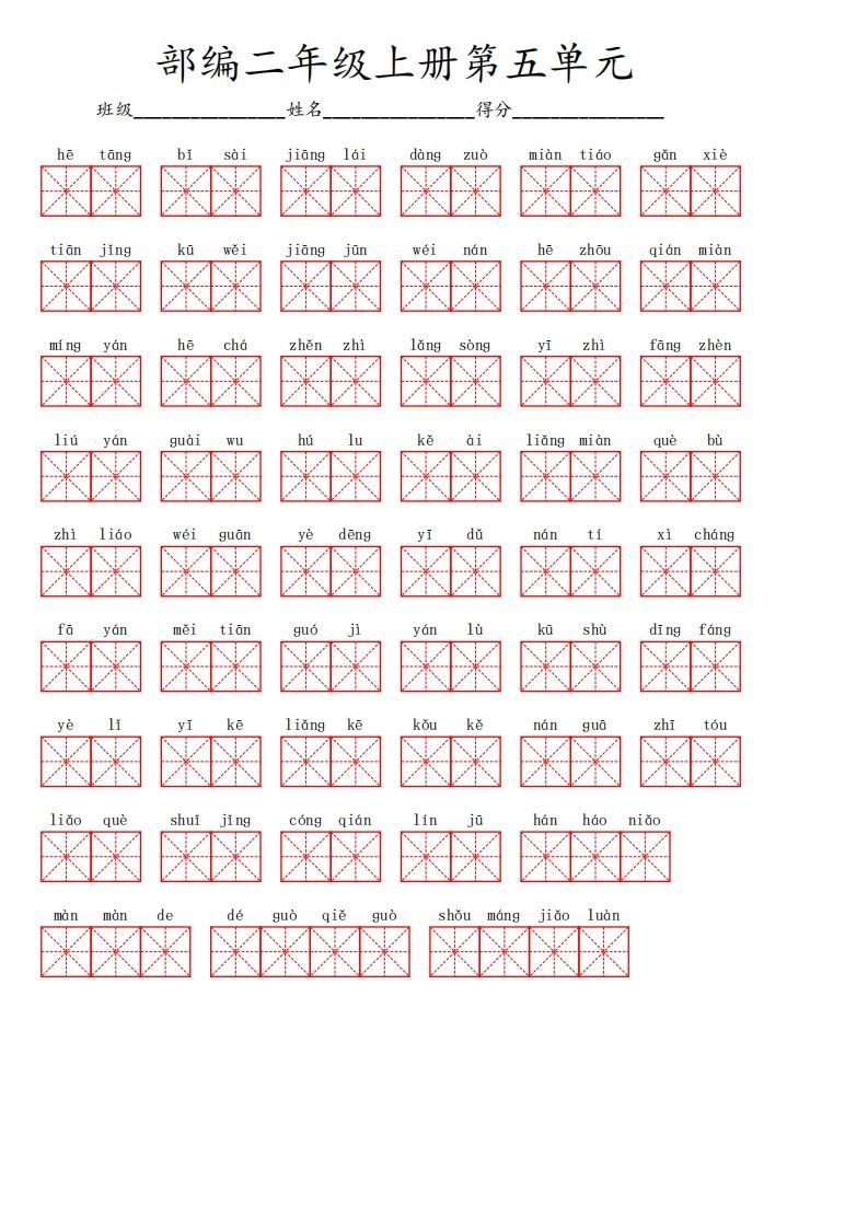 | 🔥一键快速保存,全备二上语文第五单元生字扩词词语表(看拼音写词语)!高清无水印PDF可立即打印,精准掌握词语积累,小学生高效学习必备工具包,点击速存,作业考试不再丢分! | |