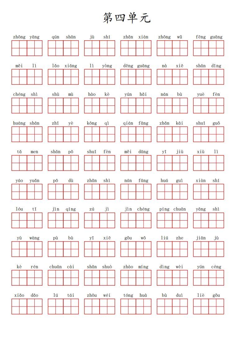 | 二上语文第四单元生字扩词词语表(看拼音写词语)|部编版|高清可打印版 | |