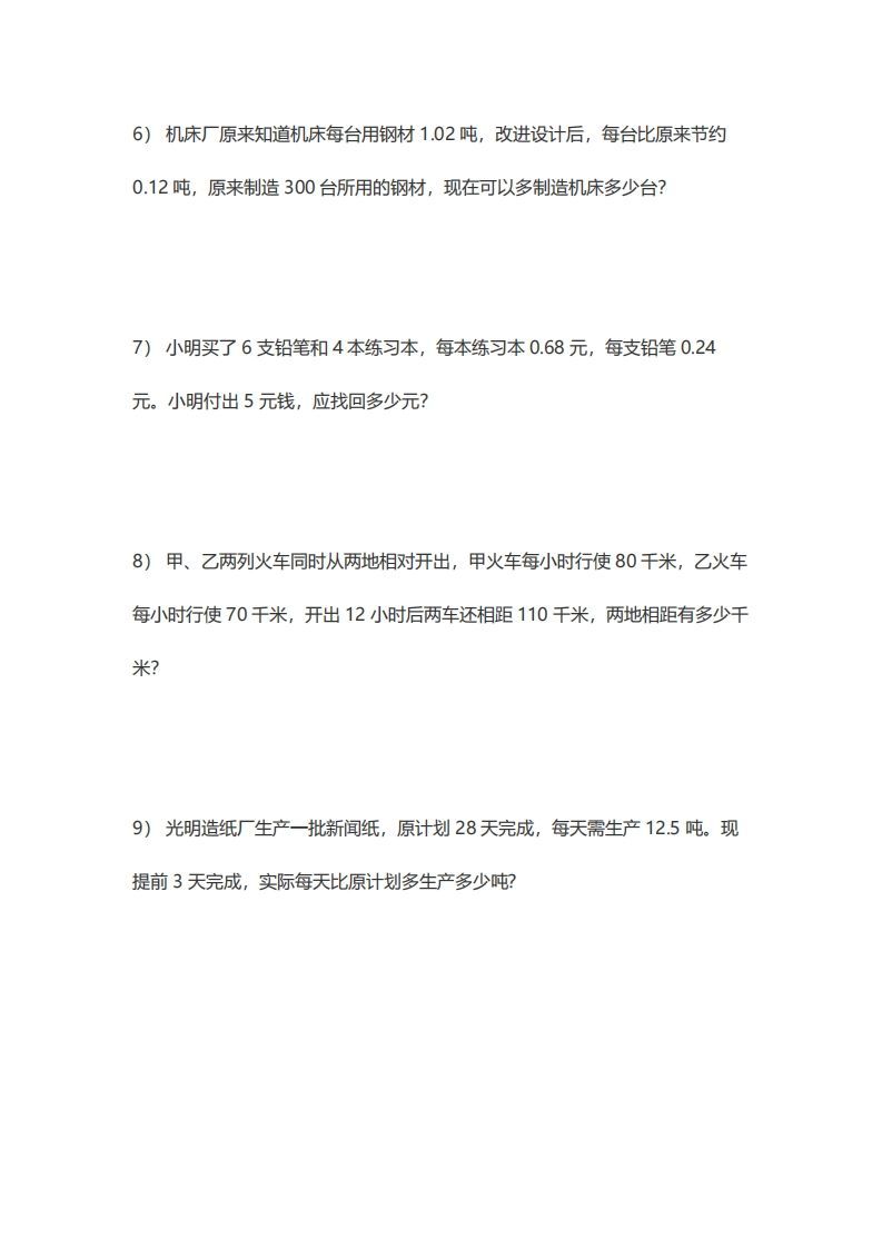 题目覆盖 | 包含分数应用题、几何图形周长面积计算、行程问题(相遇/追及)、工程问题(合作完成工作)等多元题型,每道题附详细解题过程,重点标注“分析-列式-验证”步骤,符合新课标强调的“用数学解决实际问题”要求。 | 系统性巩固五年级核心知识点,通过分类训练帮助学生建立“题型-方法”的条件反射,提升问题解决的规范性和灵活性。 |