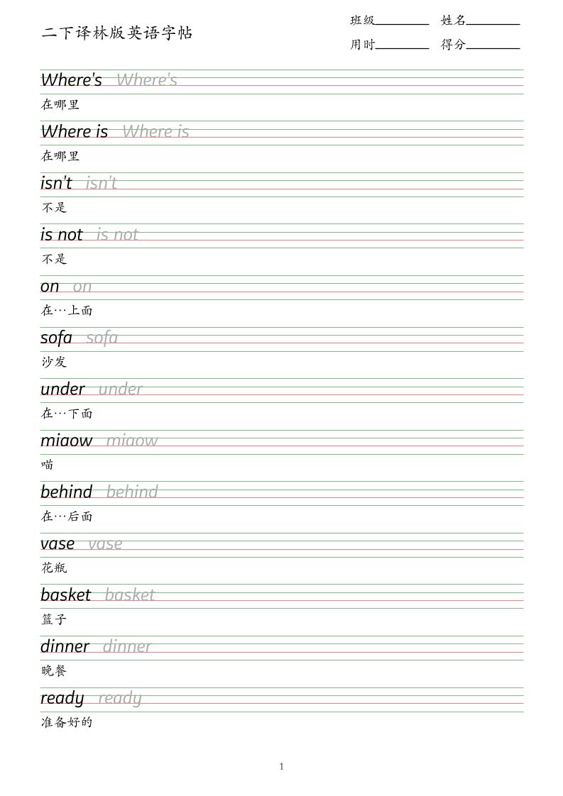 | 二下译林版英语字帖 | 清晰手写体规范训练 | 可直接打印 | |
