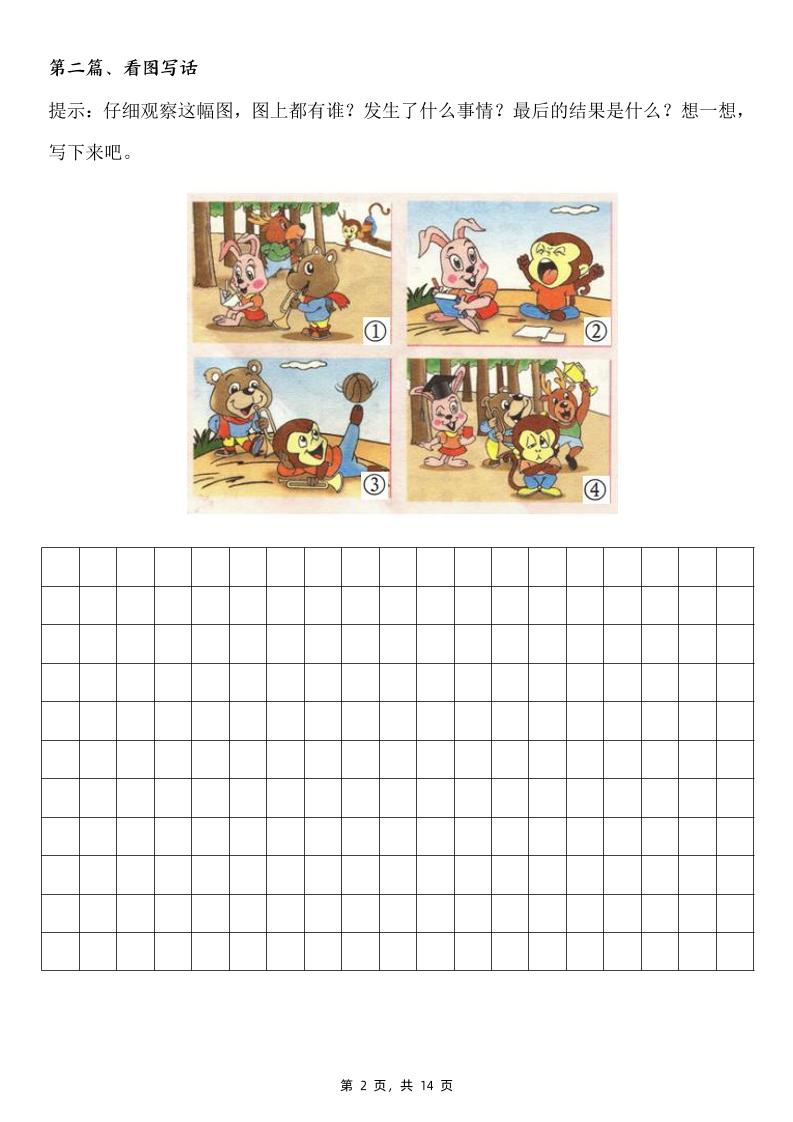 | 二下语文常考多图看图写话十篇(童话创编类)含范文14页 · 一键高清下载打印 | |