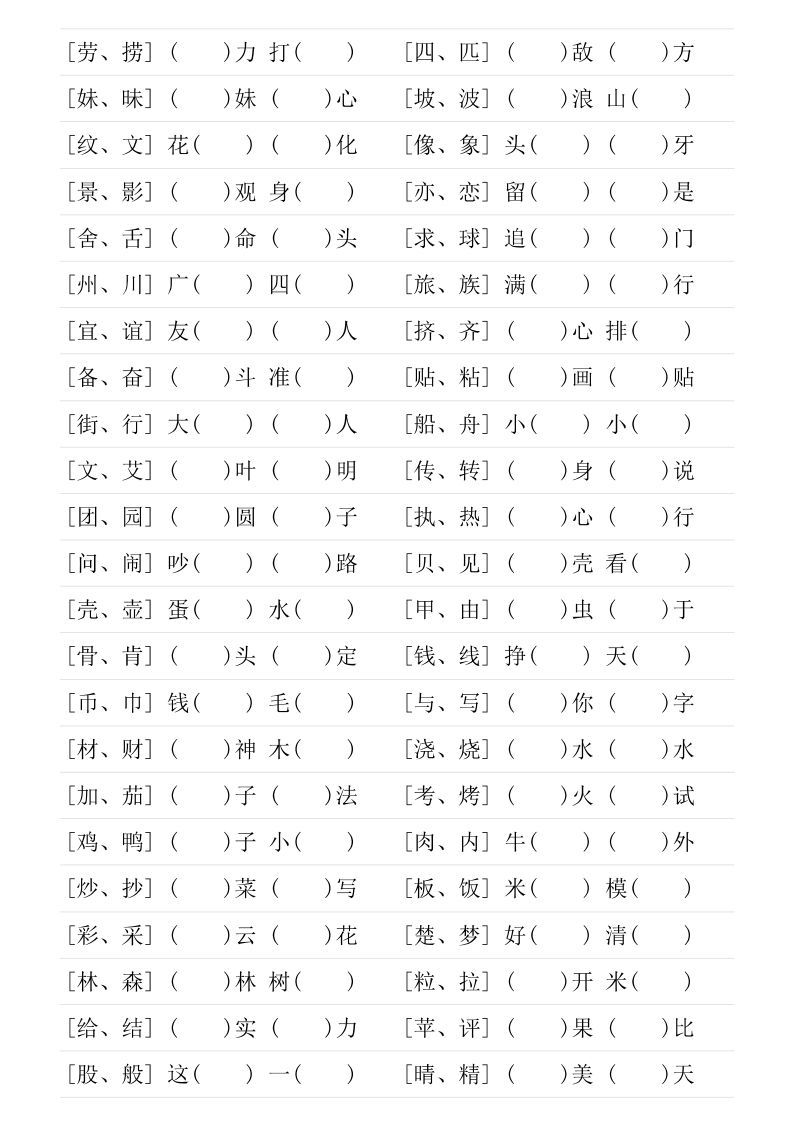 | 二年级下册形近字专项强化练习题(部编版) | |