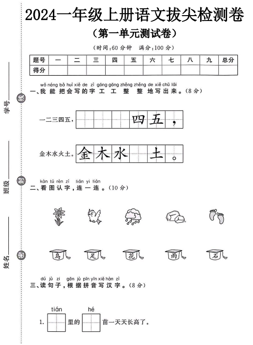 | 一年级语文笔画笔顺专项练习 + 第一单元测试卷(完整电子版) | |